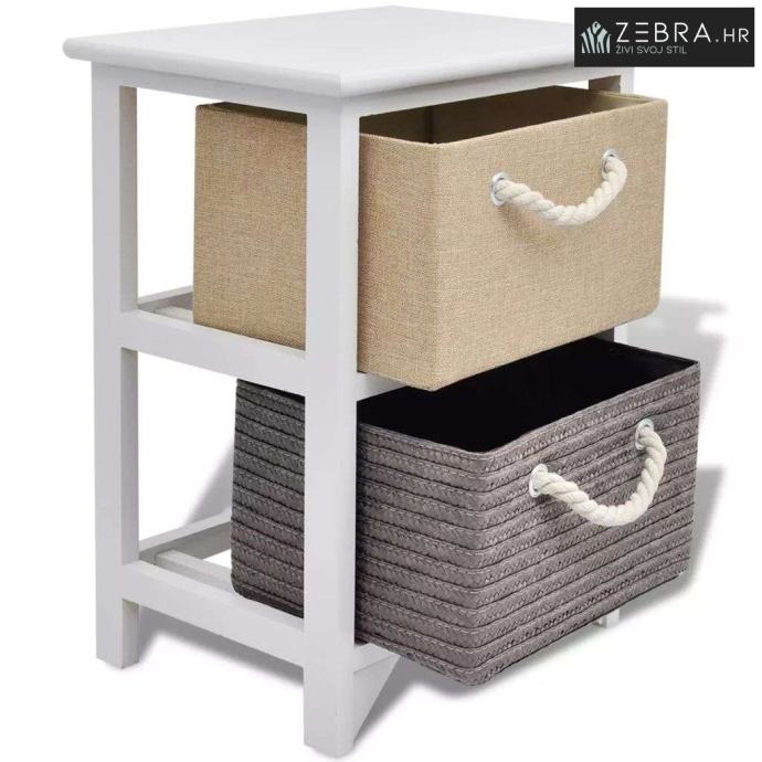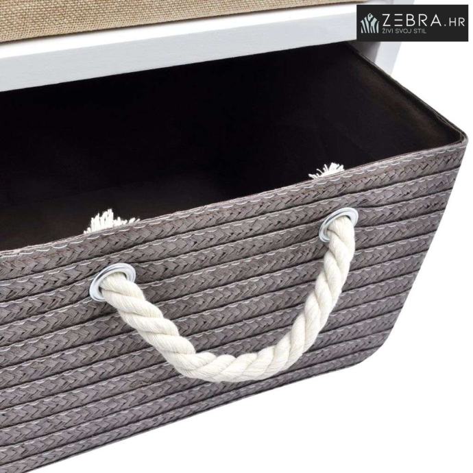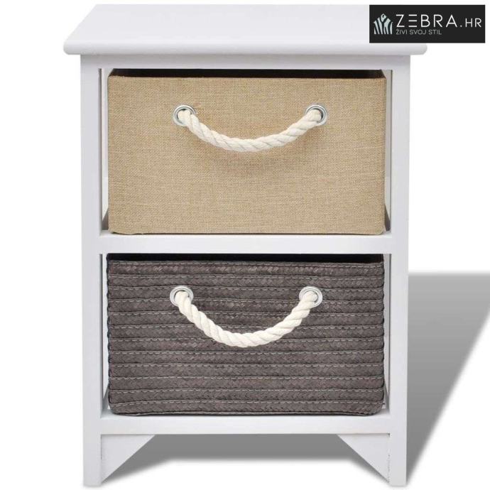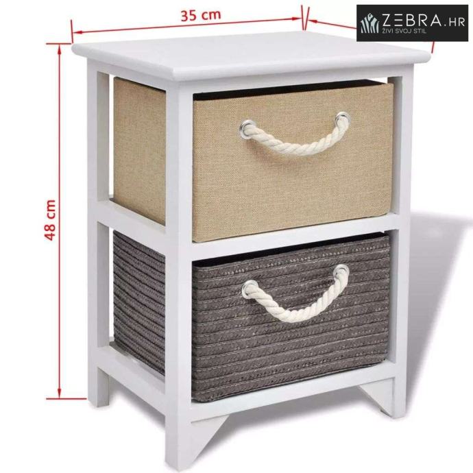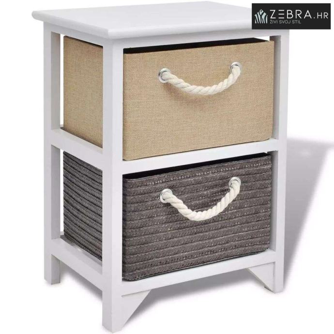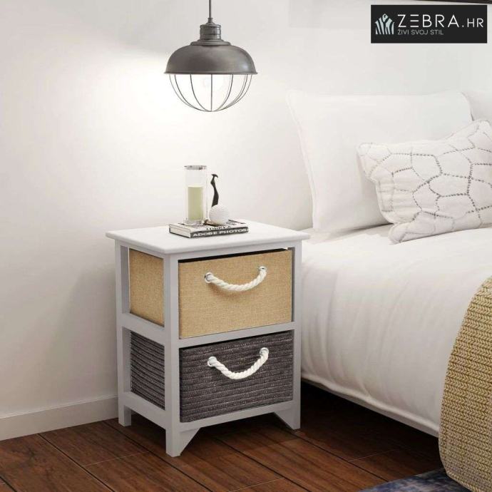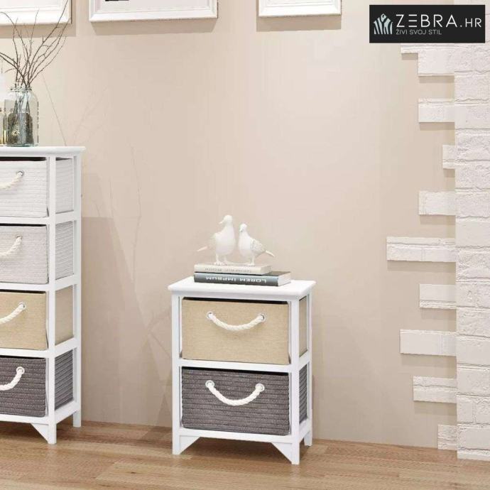 Ormarić ima 2 ladice koje pružaju puno prostora za čuvanje manjih predmeta organiziranim i na dohvat ruke. Ladice s ručkama od konopca pridonose ruralnom stilu.