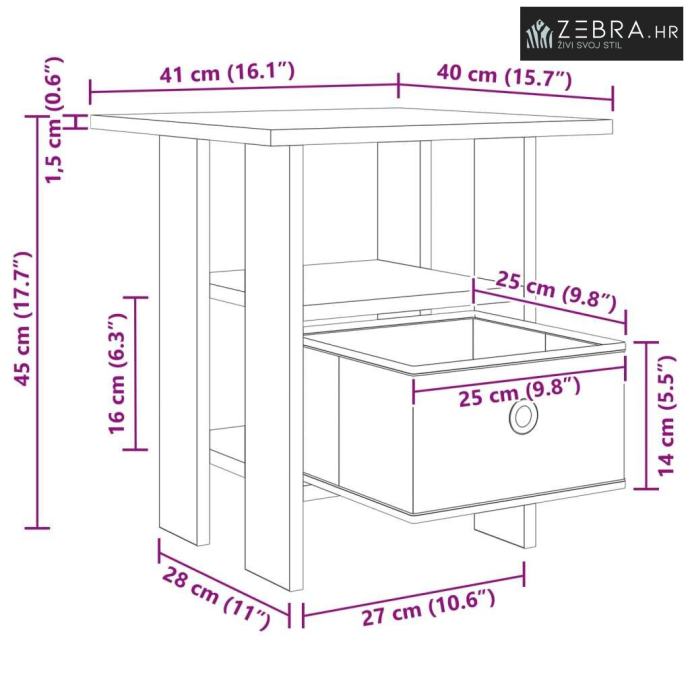 Sveukupne dimenzije: 41 x 40 x 45 cm (Š x Dub x V)