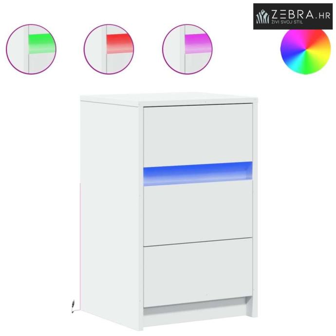 Noćni ormarić s LED svjetlima bijeli od konstruiranog drva - Bijela 1