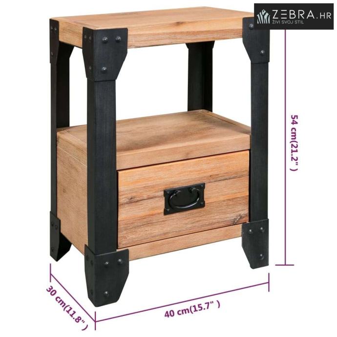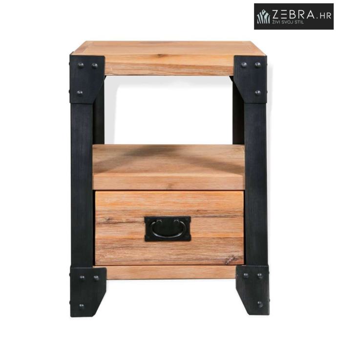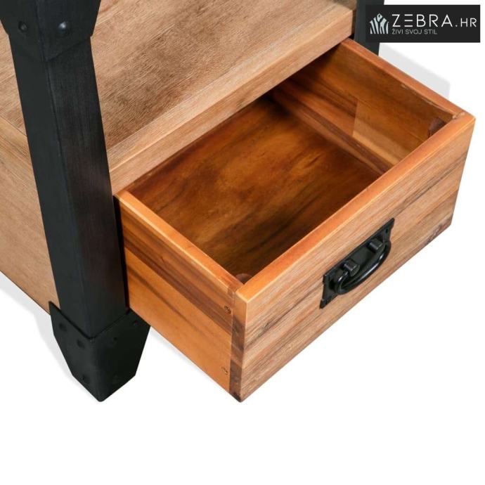 Ovaj zanimljivi noćni ormarić u industrijskom stilu je odličan dodatak za dekor vaše spavaće sobe. Izrađen je od visokokvalitetnog, masivnog drva akacije s brušenom obradom i ima čelične detalje u crnoj boji koji se odlično uklapaju u industrijski stil koji je trenutno vrlo popularan.
