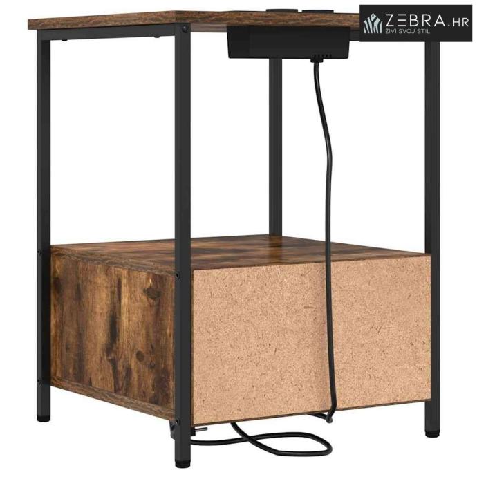 Ovaj noćni ormarić je idealan za one koji žele spojiti funkcionalnost i estetski dojam u svom prostoru. S rustikalnim šarmom, lako se uklapa u različite spavaće dekoracije. Prostrana gornja površina može savršeno poslužiti za lampu, budilicu ili knjigu, dok ugrađena punjač osigurava da su vaši uređaji uvijek spremni. Konstruirano drvo s prirodnim završetkom lijepo se uklapa s čvrstim čeličnim nogama, jamčeći dugovječnost i privlačan izgled zajedno.