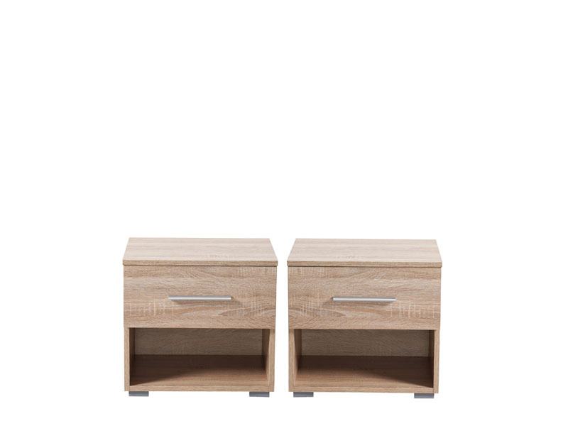 Praktičan set noćnih ormarića koji donosi funkcionalnost i urednost u spavaću sobu. Svaki ormarić ima ladicu za spremanje sitnica te otvorenu policu idealnu za knjige ili predmete koje želite imati pri ruci. Gornja površina pogodna je za lampu, budilicu ili dekorativne detalje.
