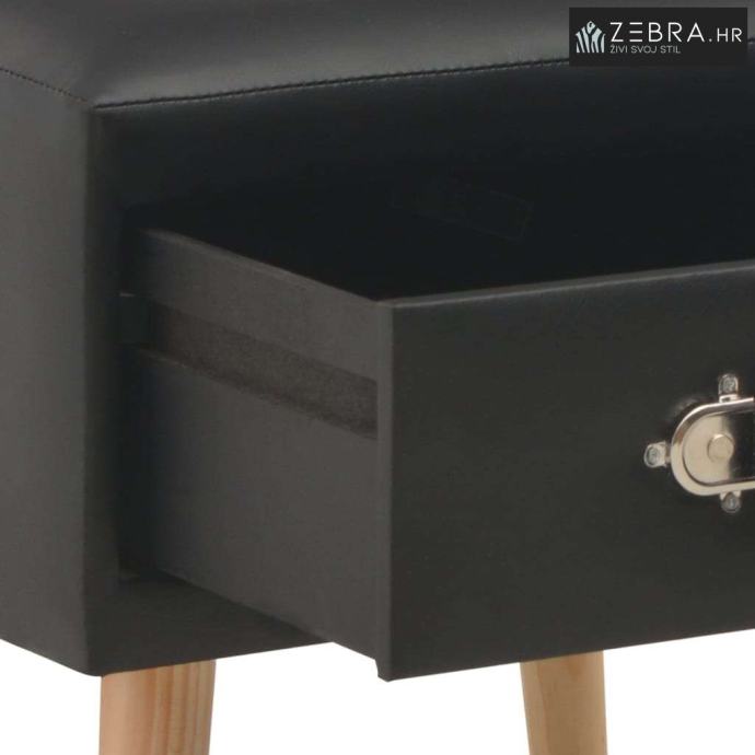 Ovaj noćni ormarić vješto je izrađen od umjetne kože i masivne borovine, što ga čini vrlo izdržljivim i čvrstim. Ormarić od umjetne kože ima ladicu koja glatko klizi i pruža dovoljno prostora za držanje manjih predmeta organiziranima i na dohvat ruke. Uz to se može upotrebljavati i kao noćni stalak, ladičar itd. Noćni ormarić jednostavno se sastavlja.