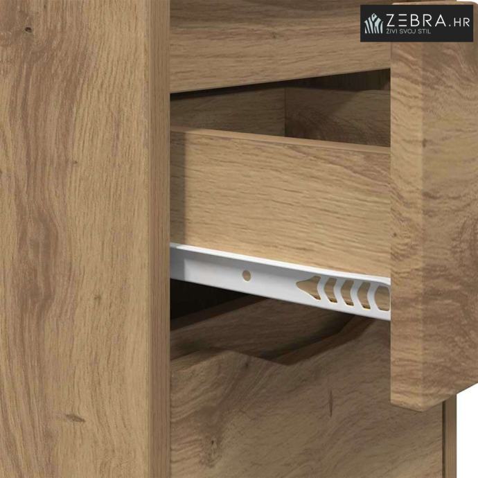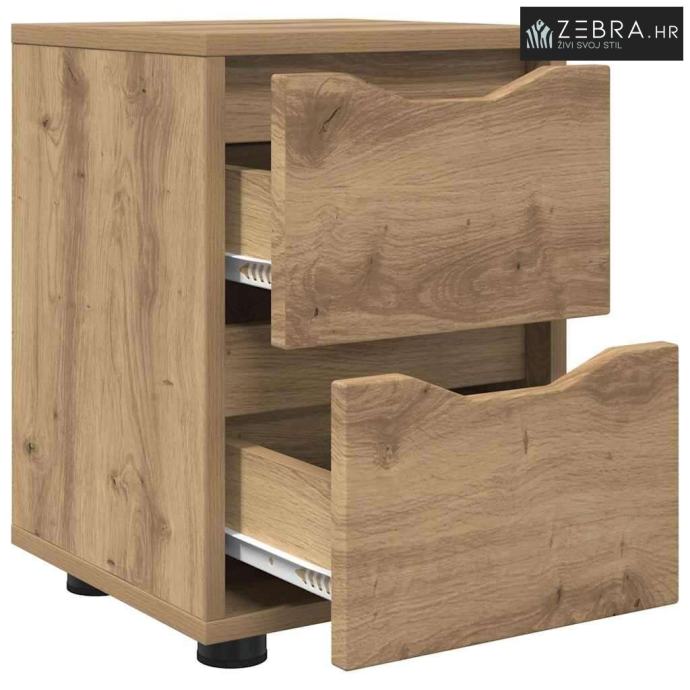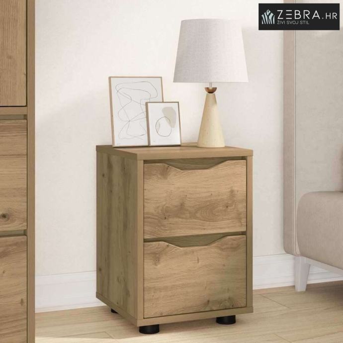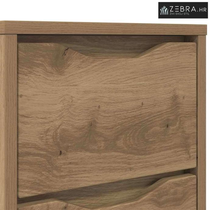 Materijali: Izrađen od čvrstog drva, ovaj noćni ormarić je otporan i dugotrajan. Drvo je odabrano zbog svoje snage, pa je ormarić stabilan i otporan na vlagu. Ova kvaliteta mu omogućuje da zadrži svoj izgled tijekom vremena, čak i uz promjenjive uvjete vlažnosti u spavaćim sobama.