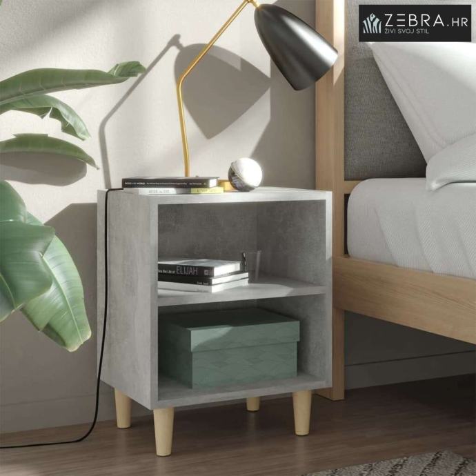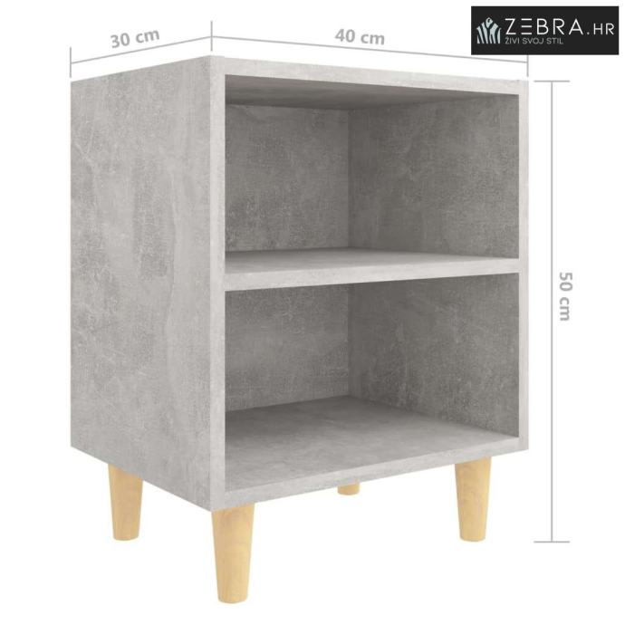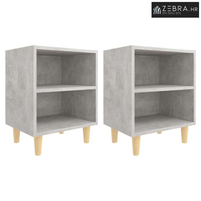 Noćni ormarići s drvenim nogama 2 kom boja betona 40x30x50 cm - Beton