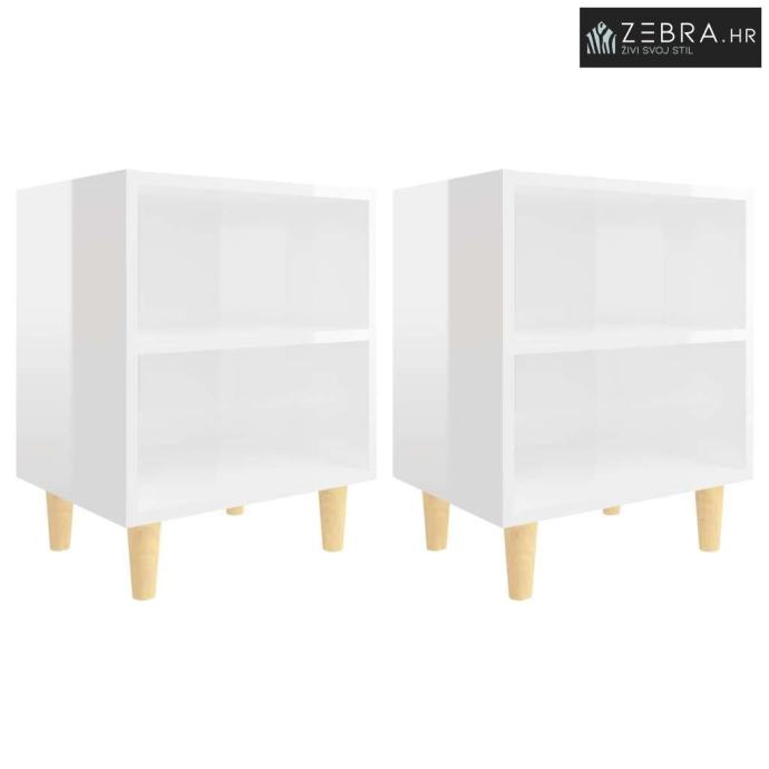 Noćni ormarići s drvenim nogama 2 kom sjajni bijeli 40x30x50 cm - Viso