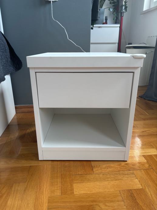 Prodajem dva jednaka noćna ormarića, rađena po mjeri, kvalitetna. Bijele boje s jednom ladicom. Čvrsti i stabilni!