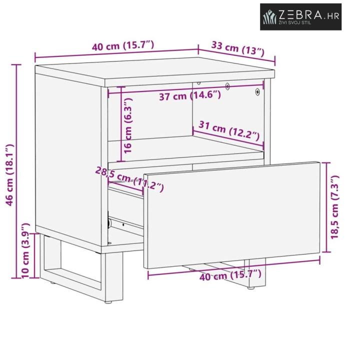Sveukupne dimenzije: 40 x 33 x 46 cm (D x Š x V)