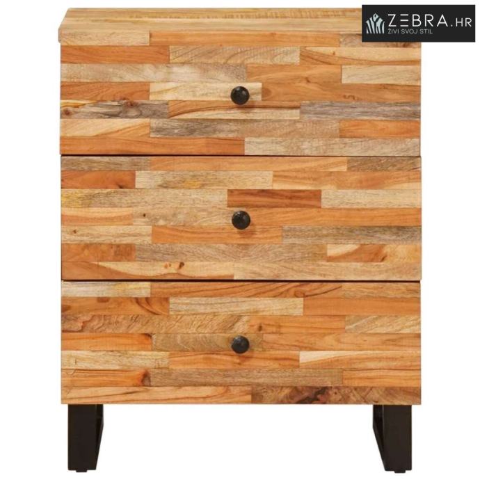 Ovaj ormar za krevet od masivnog manga donosi estetski šarm i funkcionalnost. Sa svojim pravokutnim oblikom i bogatom smeđom bojom, idealan je dodatak za svaku spavaću sobu. Prirodne drvene strukture daju mu elegantan, ali rustikalan izgled, što ga čini super za različite stilove, od modernog do klasičnog. Njegova glatka površina nudi savršeno mjesto za lampe, knjige ili šalicu kave i izvrsno se uklapa u stil tvoje spavaće sobe.