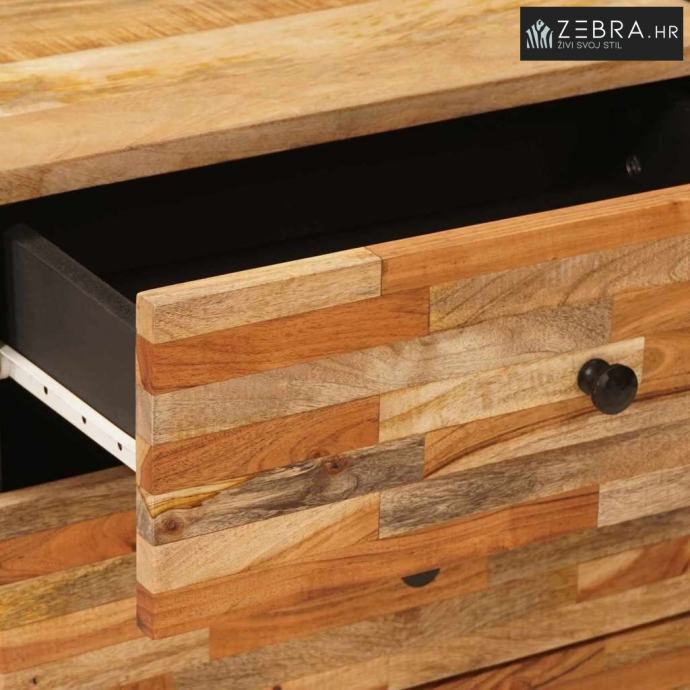 Izrada od masivnog manga Ovaj ormar je kvalitetno izrađen od masivnog manga, poznatog po izdržljivosti i lijepom izgledu. Prirodni uzorci drva dodatno naglašavaju njegov vizualni dojam, dajući mu poseban i bezvremenski stil. Ovaj materijal jamči dugovječnost i robusnost, čineći ga pouzdanim izborom za svakodnevnu upotrebu.