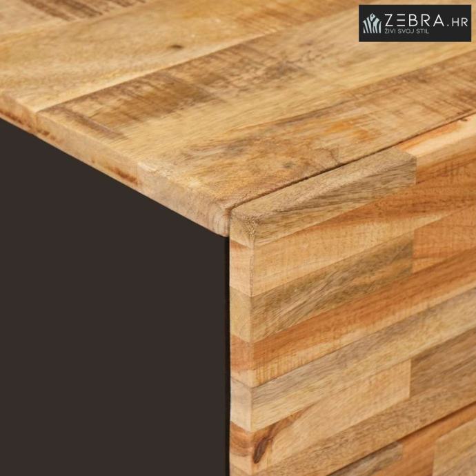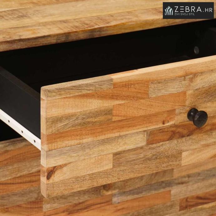 Materijali: Komoda je od masivnog drva manga, s bogatim smeškim tonovima i jedinstvenim uzorkom zrna. Ovaj prirodni materijal jamči dugotrajnost i otpornost na čestu upotrebu.