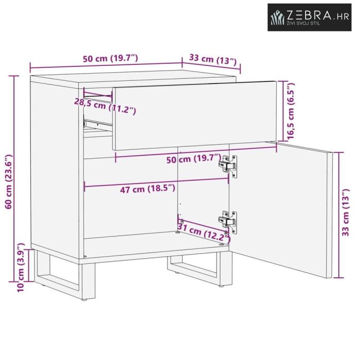 Sveukupne dimenzije: 50 x 33 x 60 cm (D x Š x V)