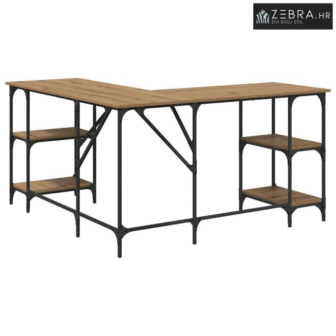 Ovaj L-oblikovani uredski stol s policama savršen je za svaki studio ili ured. Njegov industrijski stil spaja sirove materijale s modernim dizajnom. Idealan je za kutne prostore i maksimizira dostupnu površinu, što ga čini savršenim za više monitora ili radnih stanica. Hrapava površina i istrošeni završetak dodaju vintage šarm, dok nude dovoljno radnog prostora za sve vaše uredske potrepštine.