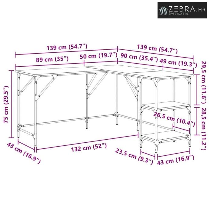 Ovaj L-obljetni industrijski stol spaja stil i funkcionalnost s modernim dizajnom inspiriranim urbanim potkrovljem. Kombinacija konstruiranog drva i čeličnih nogu nudi vizualnu privlačnost i praktičnost. Savršen je za one koji traže svestran radni prostor za kućne urede, učionice ili kreativne atelje. Kombinacija sirovih materijala daje mu chic, ali funkcionalan stil koji se uklapa u većinu interijera.