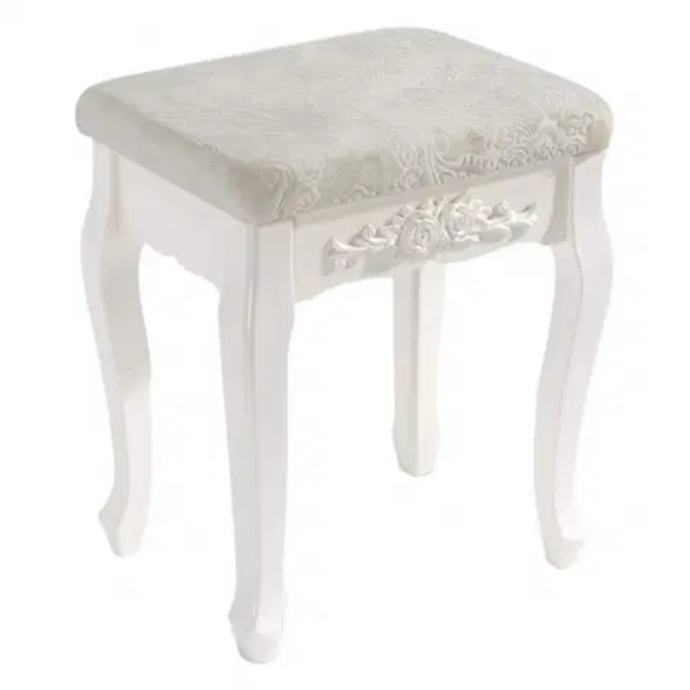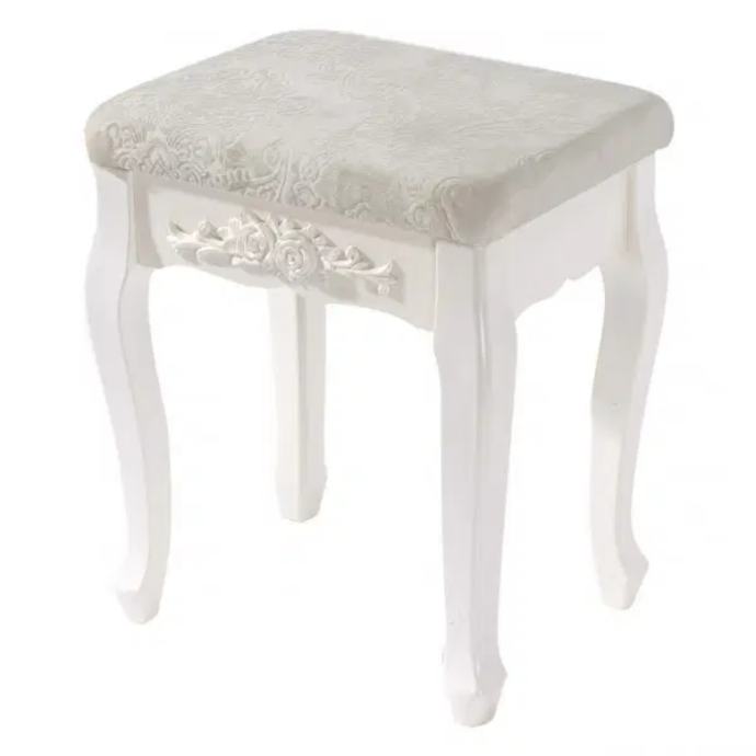Toaletni stolac s cvjetnom presvlakom u krem boji baroknog stila i krem bojnim MDF nogama