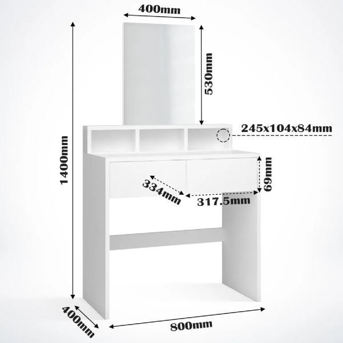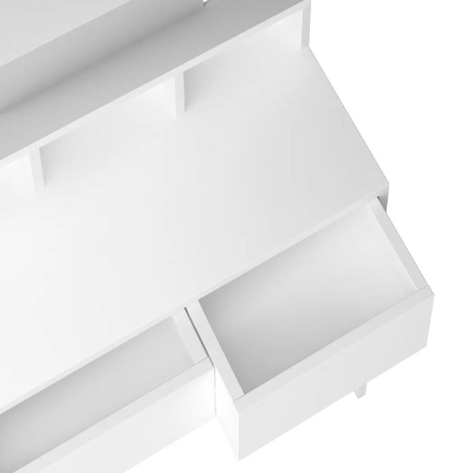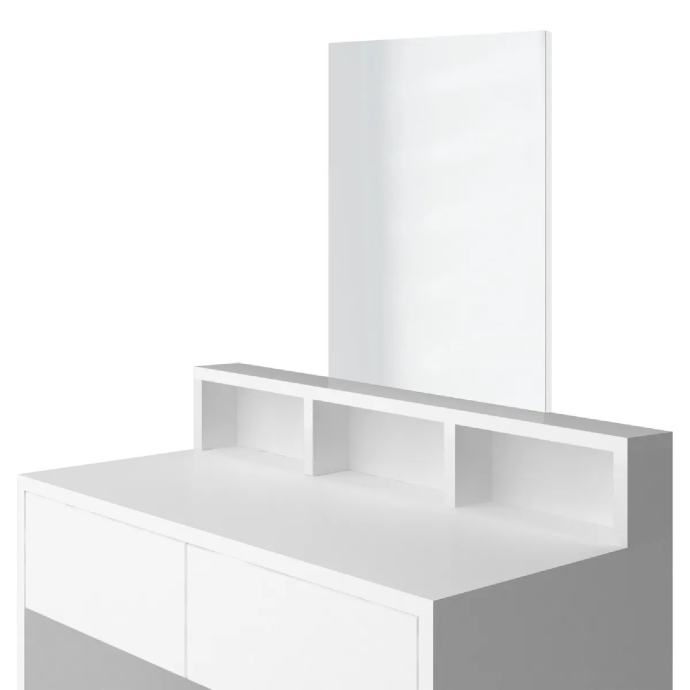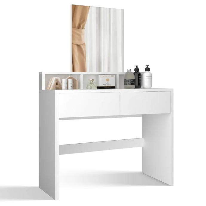 Otkrijte naš stilski toaletni stolić, izrađen s velikom pažnjom za detalje kako biste podigli svoju rutinu ljepote na novu razinu. Ovaj stol nudi izdašan podni prostor bez polica, što vam omogućuje jednostavno pohranjivanje svih vaših kozmetičkih stvari koje morate imati.