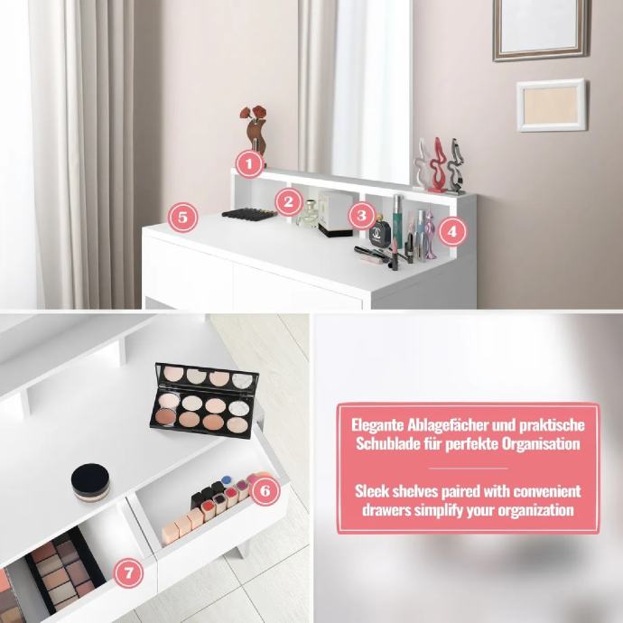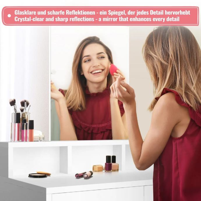Njega je laka - jednostavno brisanje dovoljno je da toaletni stolić bude sjajan i funkcionalan u vašem kozmetičkom području.