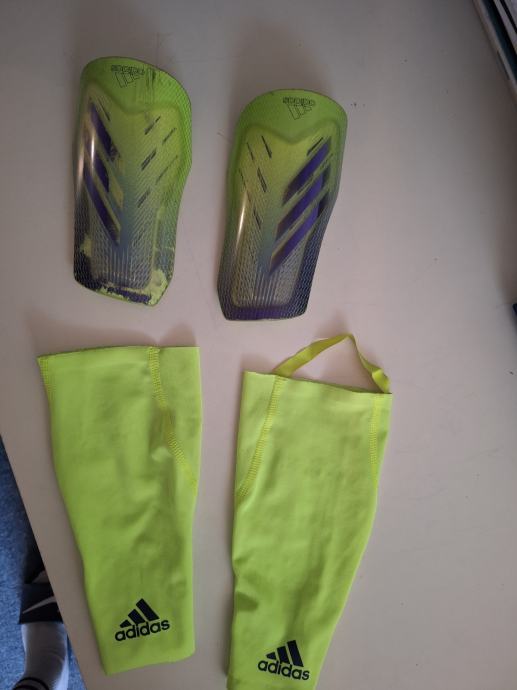 Prodajem rabljene Adidas X Ghosted kostobrane u veličini small/S neonsko zelene boje s ljubičastim detaljima. Komplet uključuje štitinike i navlake za noge idealne za nogometne treninge i utakmice. Unatoč korištenju, kostobrani su još uvijek u dobrom stanju i pružaju odličnu zaštitu tijekom igre.