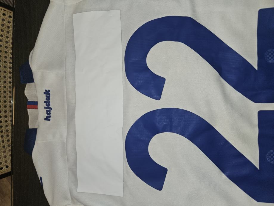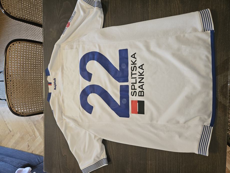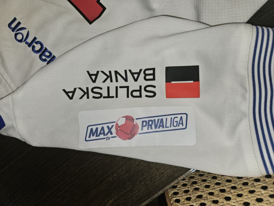 Prodajem dres Hajduka, 2014/15, Maloča MW. Preko reklame Croatia osiguranje naljepljena je bjela tkanina.