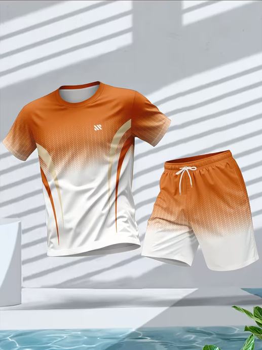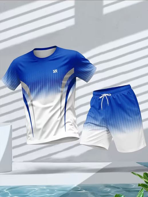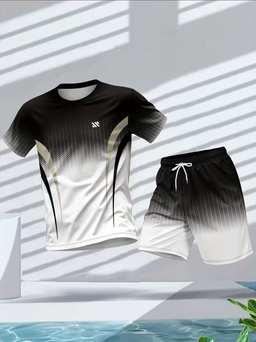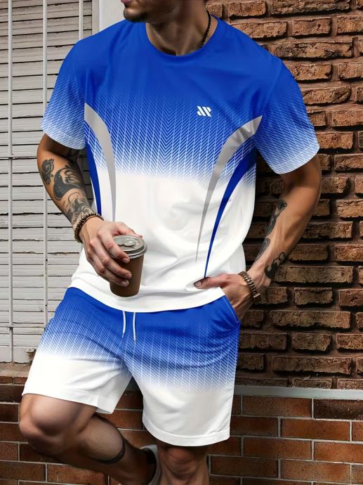 Muški sportski komplet kratkih rukava i majice s okruglim izrezom, ležerni ljetni outfit s printom
