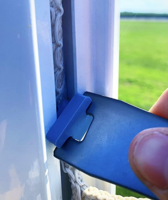 Dvije vrste zakački za postavljanje mreža na aluminijske golove. Zakačke su izrađene od Akrilonitril-Stiren-Akrilata koji otporan na visoke temperature i UV zračenje. ZAKAČKA H2 - dimenzije otvora H- 2 [mm] T- 8 [mm] ZAKAČKA H3 - dimenzije otvora H- 3 [mm] T- 11 [mm]