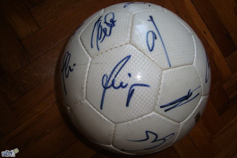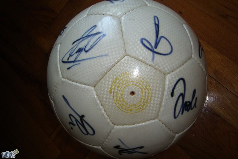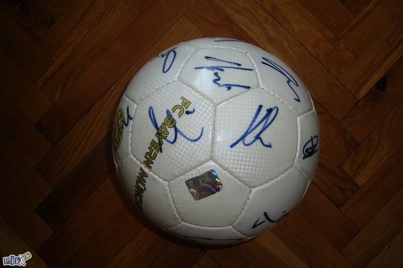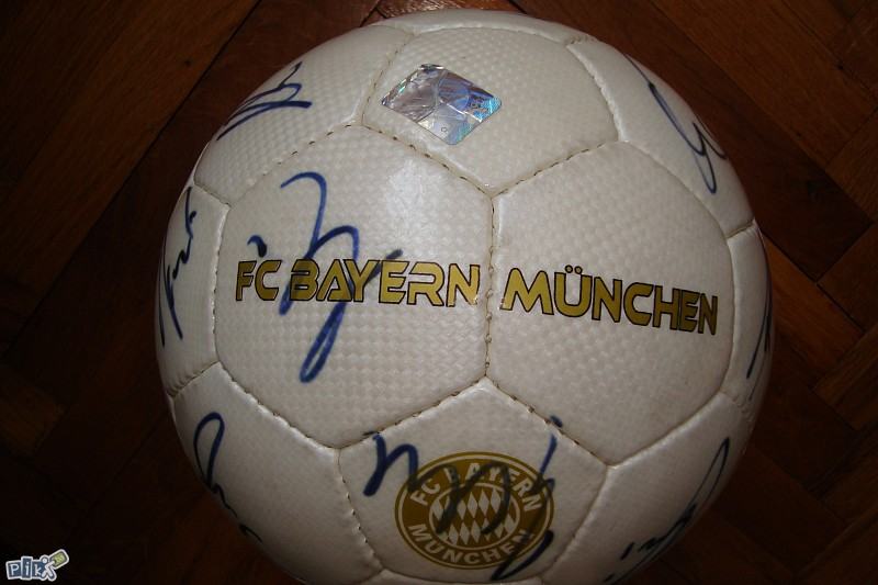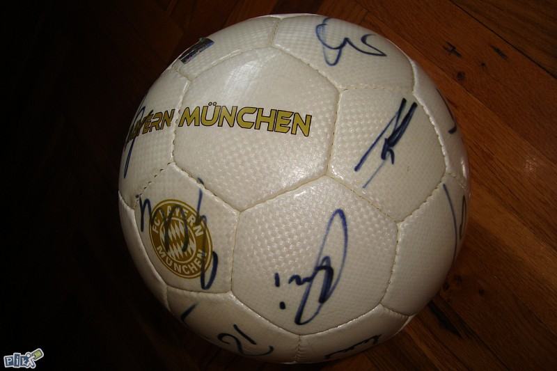 Nogometna lopta iz kluba Bayern Munich,sa serijskim brojem i vodenim žigom. Potpisana od igrača iz sezone 2004-5.