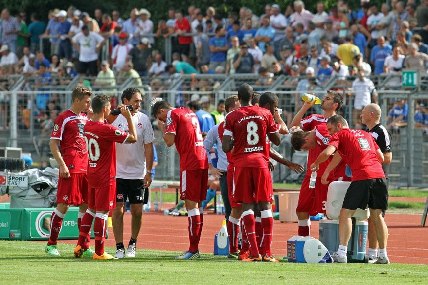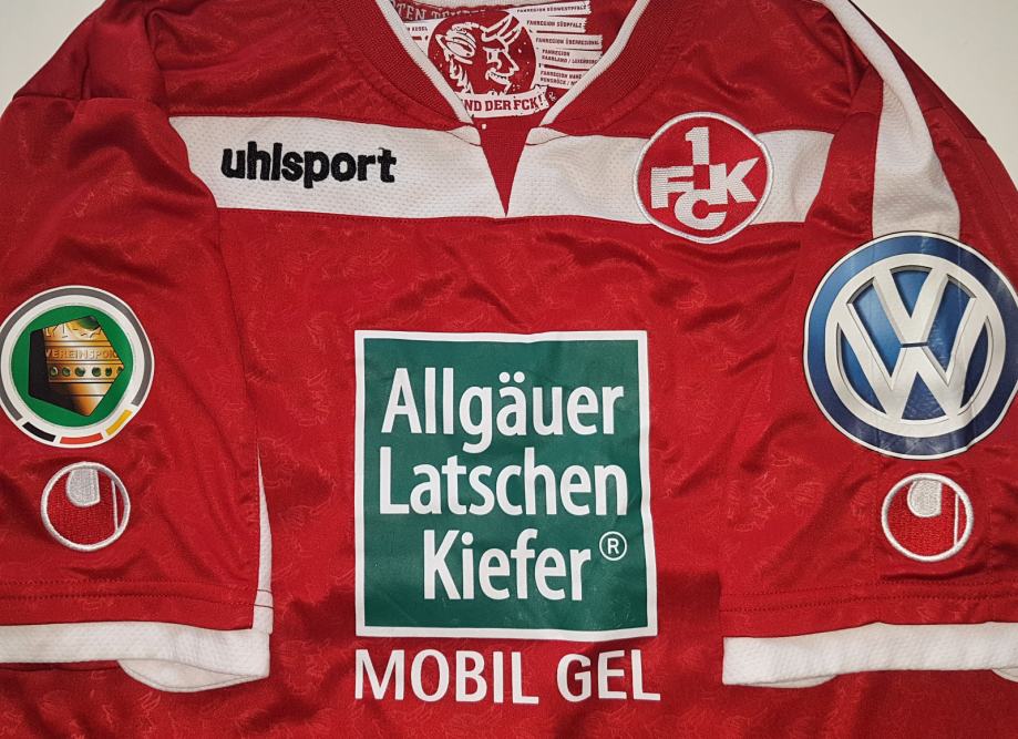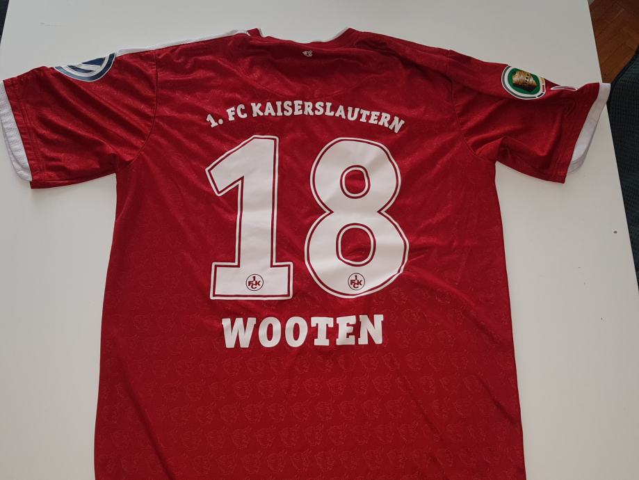 MW dres FC Kaiserlautern igrac Andrew Wooten # 18 , dres sa utakmice njemackog kupa( DFB-POKAL) odigrane 3.8.2013 stadion Pichterich : Fc Neckarsulmer SU - 1. FC Kaiserslautern 0:7 ! full oznake kupaL+D rukav , sponzori VW, Latschen Kiefel, sport oprema UHLSPORT vel L LARGE rr