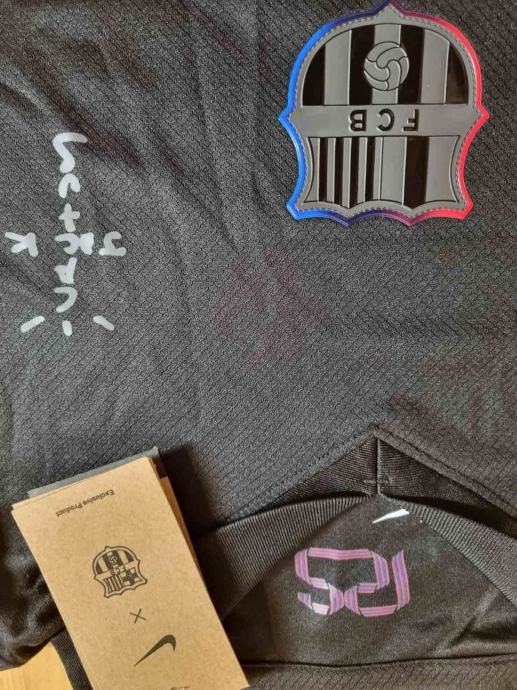 Prodajem Nike Barcelona dres u tamnoj boji s crveno-plavim detaljima. Dres jespecijalno izdanje s raznim grafičkim elementima i natpisima, uključujući grb kluba i Nike logo. Dolazi potpuno nov s etiketom. Cena nije zadnja. Za vise informacija pisi 069 843 896.