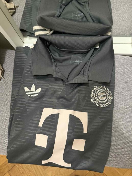 Prodajem Adidas dres nogometnog kluba Bayern München. Dres je u sivoj boji s prepoznatljivim T-Mobile logom na prednjoj strani i Adidas znakom. Izvrsna prilika za sve navijače ovog prestižnog kluba.