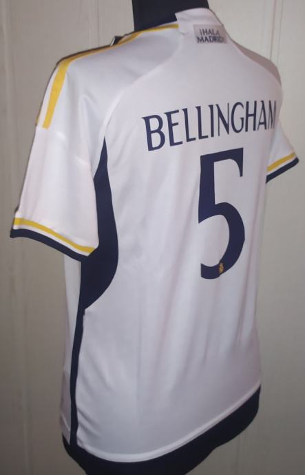 Bellingham - dječji nogometni komplet (dres) Real Madrid FC, u kojem se nalazi majica s brojem 5 i natpisom BELLINGHAM te kratke sportske hlače s brojem 5.