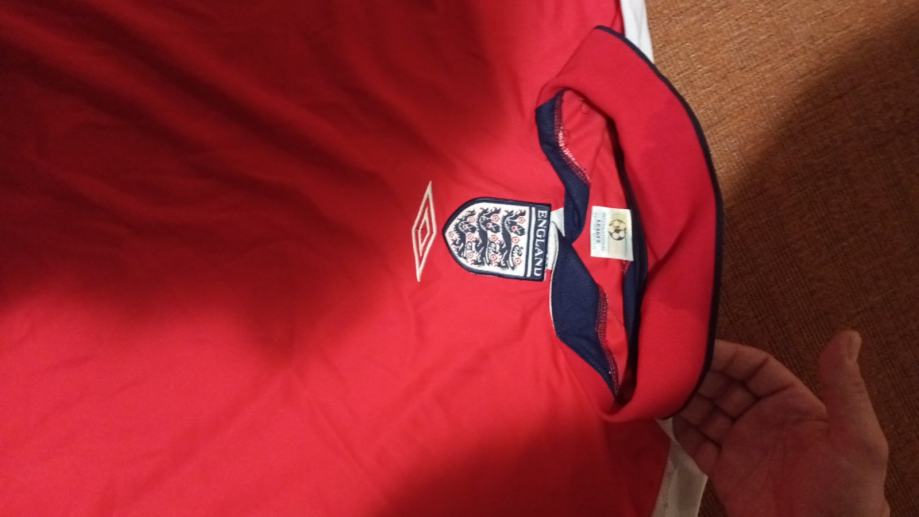 Gostujuci dres Engleske repke,dobio sam na poklon na moru od jednog Britanca tj mjenjali smo se ,ja njemu Hrvatski on meni ovaj,dres je ocuvan i nije nesto nosen posto mi je velik.Mozete me dobiti porukom na Njuskalo ili Viber,.šaljem hp expresom,tiskom ili u dogovoru sa kupcem.Dres je marke UMBRO i vidi se da je original ,a ne kineska kopija.Uvezena zvjezdica oznacava njihovo osvajanje svijetakog prvenstva 66 godine.Za sve upite slobodno se javite.