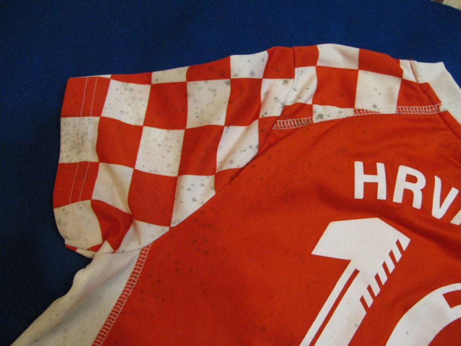 Dres nije nošen ali je od stajanja po sebi dobio crne točkice (vidi slike).