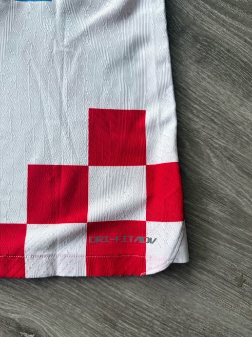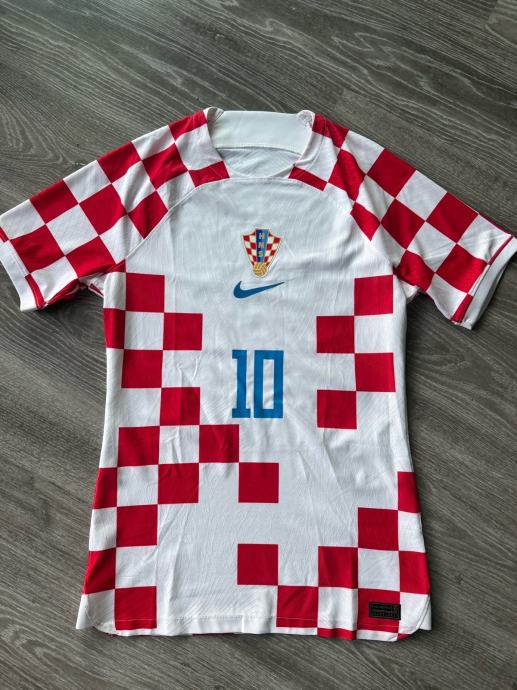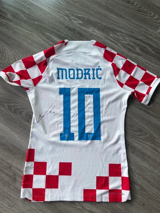 Prodajem dres Hrvatske s brojem 10 i prezimenom Modrić na leđima. Radi se o Nike domaćem dresu s prepoznatljivim crveno-bijelim kockastim uzorkom i grbom HNS-a na prsima. Dres je izrađen od Nike Dri-FIT materijala koji odvodi vlagu od tijela. Na poleđini dresu vidljiv je potpis.