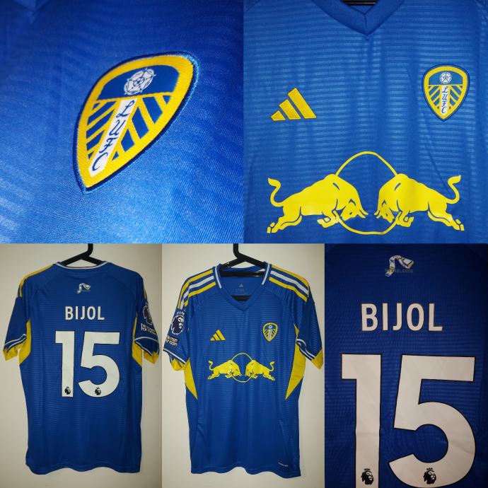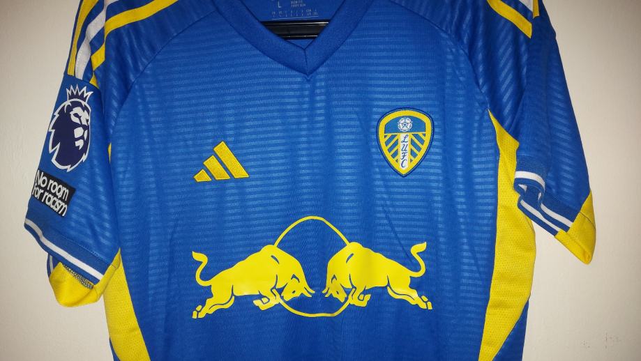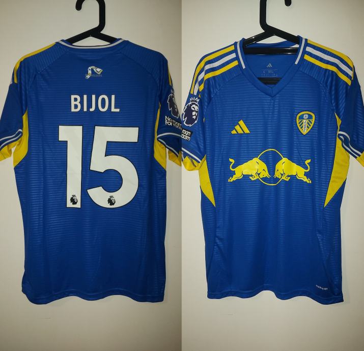 Prodajem novi dres Leeds United s imenom Jaka Bijol i brojem 15 u veličini L za sezonu 25/26. Dres je u plavoj boji s karakterističnim žutim detaljima i logotipom Red Bull sponzora. Iako je bez etikete, dres je potpuno nov i nekorišten.
