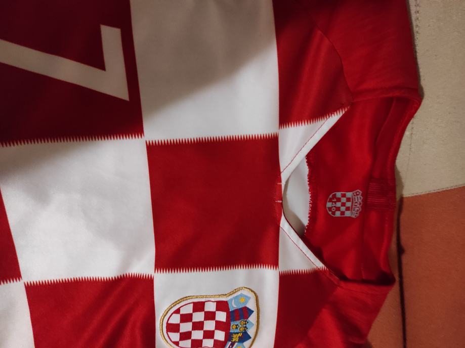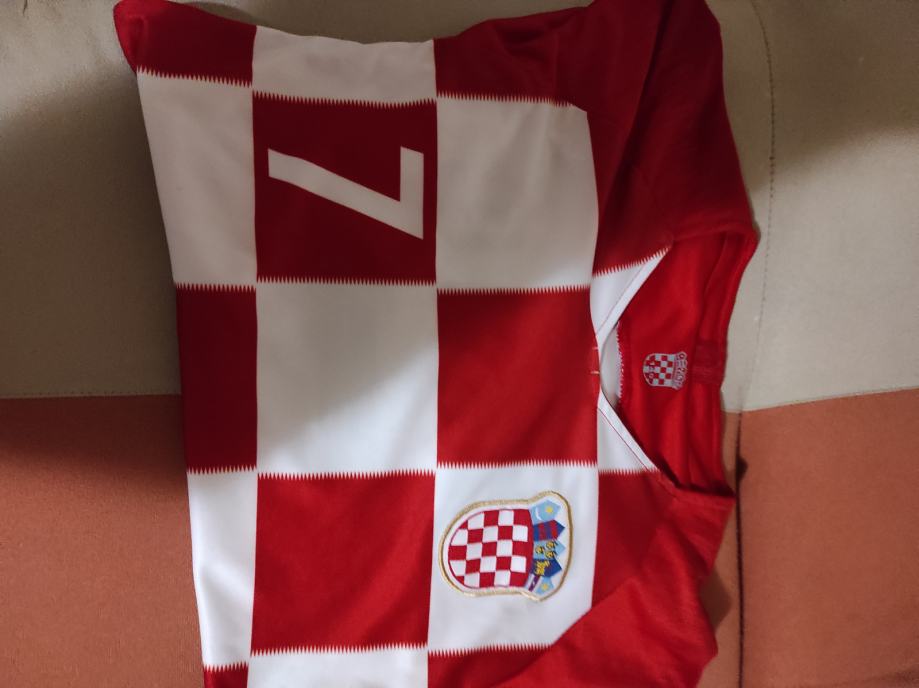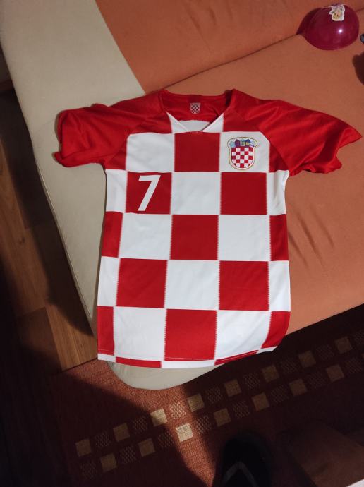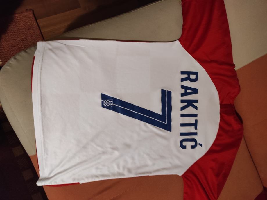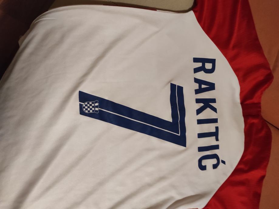 Dječji dres Br 7 RAKITIC .Dres je potpuno nov,veličina 140 ,otprilike za dijete 10-11 godina ovisno o gradi.Dres je potpuno novi sto se vidi na slikama,moj sin ga dobio na poklon ali mu je mali tako da ga prodajem.Mozete se javiti na Viber ili njuskalo ili nazovite,a saljem postom ili tiskom ili u dogovoru sa kupcem.Super poklon dijetetu koji voli Rakitića ili Repku.Pogledaj slike!!