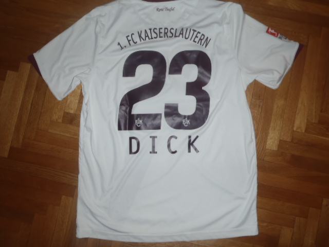 1.FCK dres Kaiserslautern FC sezona 2010 igrac Florian Dick # 23 , grb kluba na broju , oznaka Bundes lige D rukav / flok