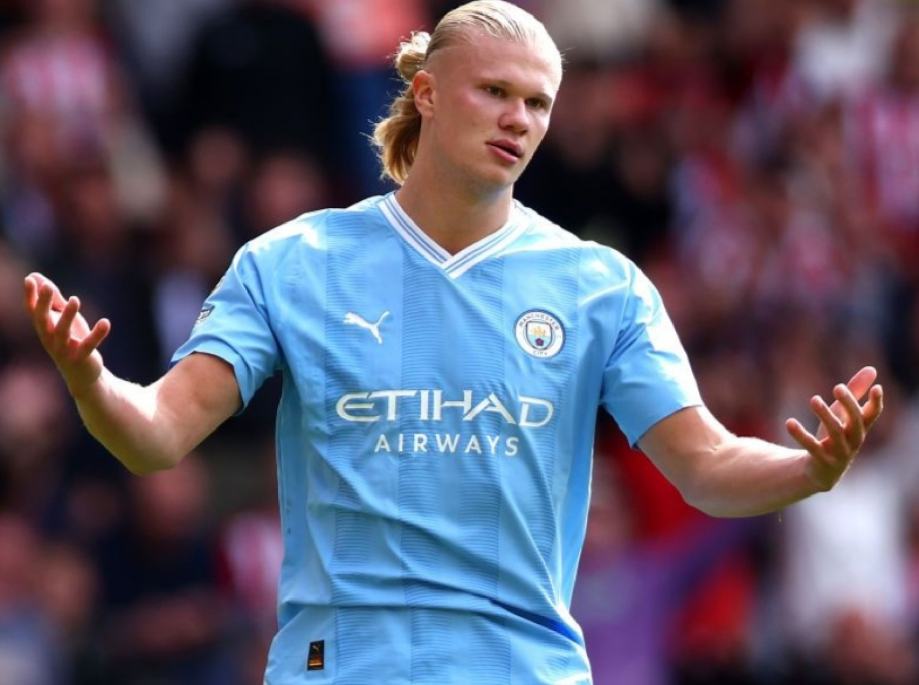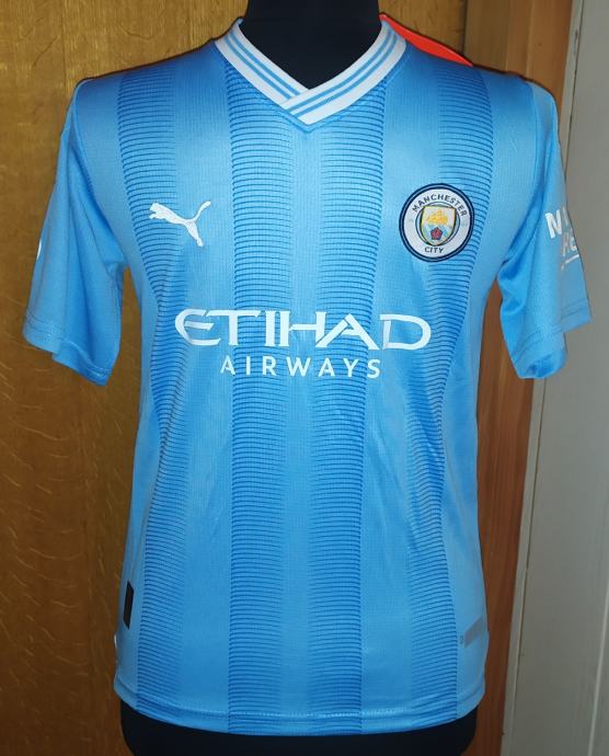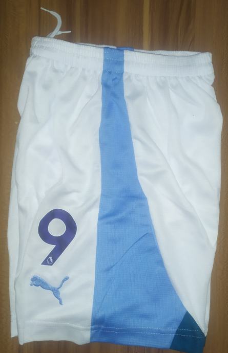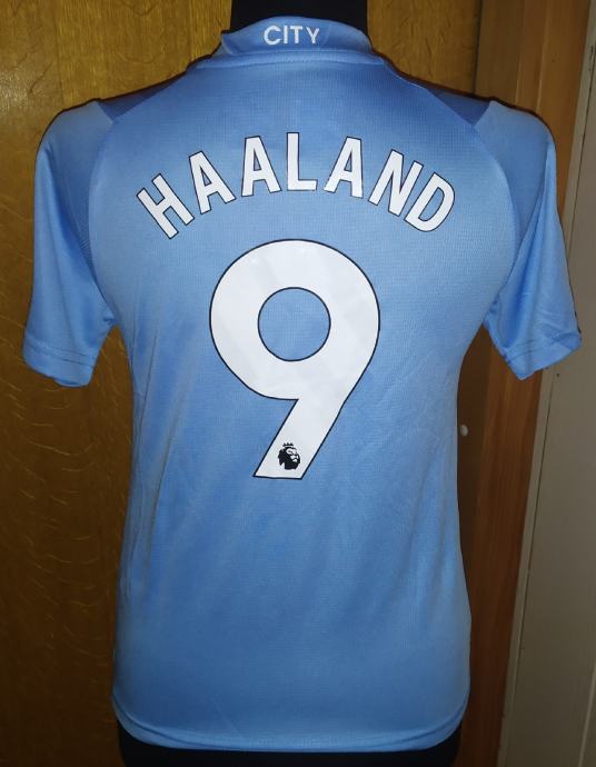 HAALAND, dječji nogometni komplet (dres) Manchester City FC, u kojem se nalazi majica s brojem 9 s natpisom HAALAND i kratke sportske hlače s brojem 9.