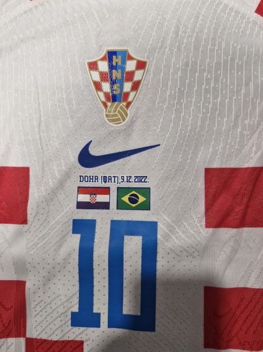 Dres Hrvatska NIKE fit ADV player verzija slim fit , elastin -reljef- Igrač Luka Modrić sve oznake Qatar 2022 vel M medium- utakmica Croatia VS Brasil DOHA oznake prvenstva ,detalji zastavice meča datum NFC ČIP orig player size color broj i ime >FIFA na oba rukava oznake ispod grba ČIP HNS familiy dres kao NOVI ,sve print -pvc nista ušiveno- original iz Hrvatskog nogometnog saveza Player Issue - dostupno odmah !