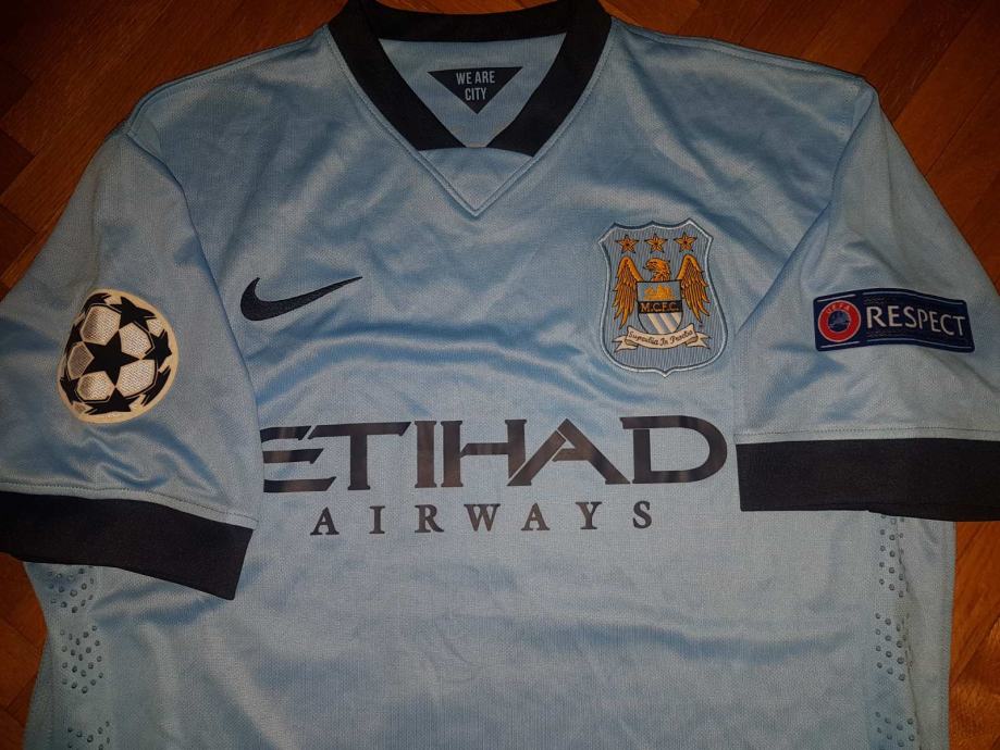 dres Fc Manchester City, vel L . sport oprema NIKE , sezona 2015, igrac EDIN DŽEKO # 10 , sponzor ETIHAD airways ,grb kluba na broju, oznake lige prvaka na rukavima / respect , stanje izvrsno !