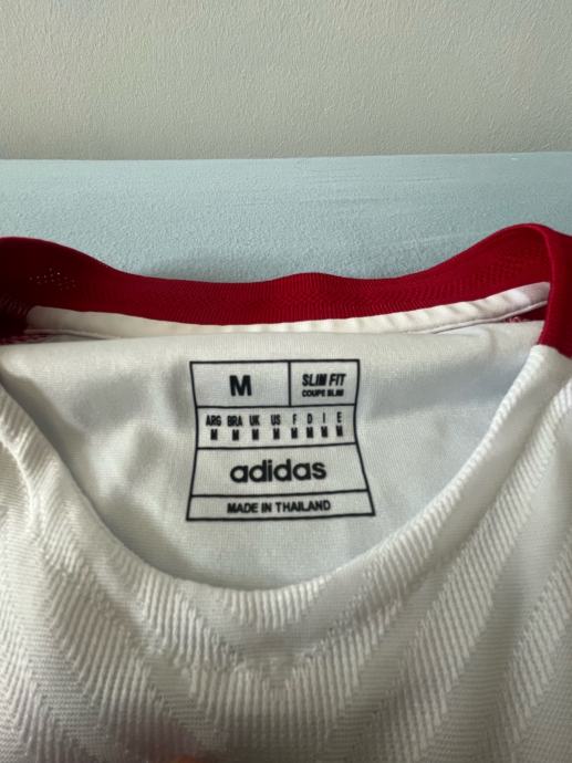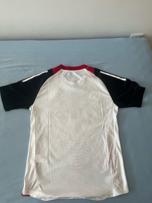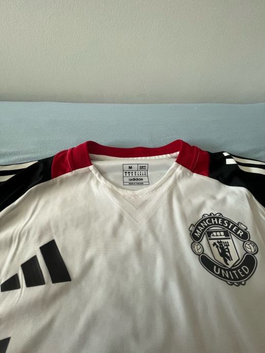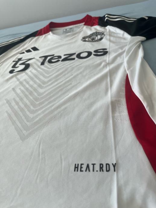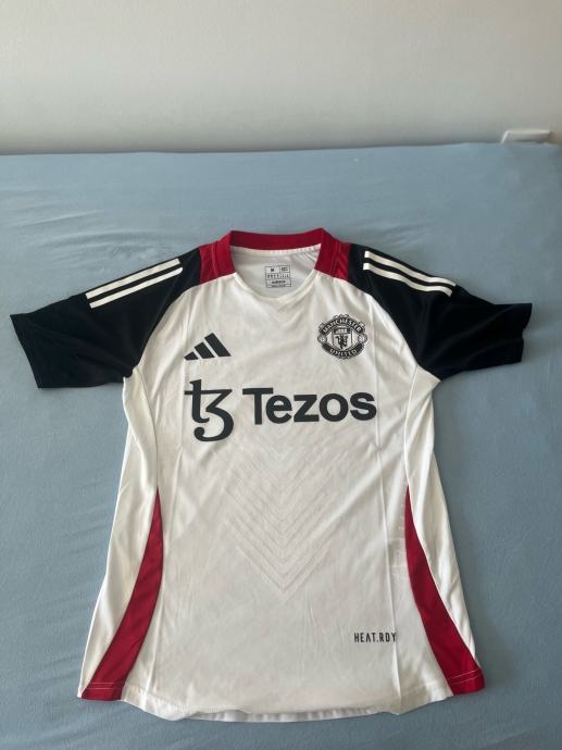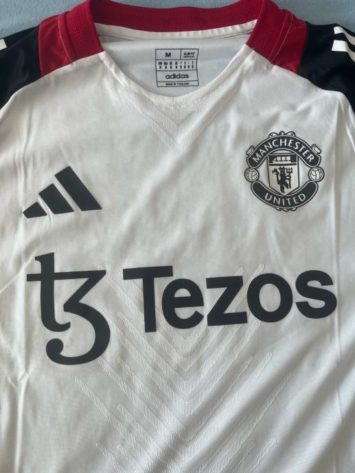 Originalni Manchester United trening dres za sezonu 24/25 u bijelo-crnoj kombinaciji boja. Dres je nov, samo bez etikete, a krasi ga Tezos sponzorstvo na prednjoj strani. Izrađen od kvalitetnog Adidas Tiro materijala s crnim rukavima i crvenim detaljima.