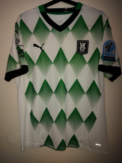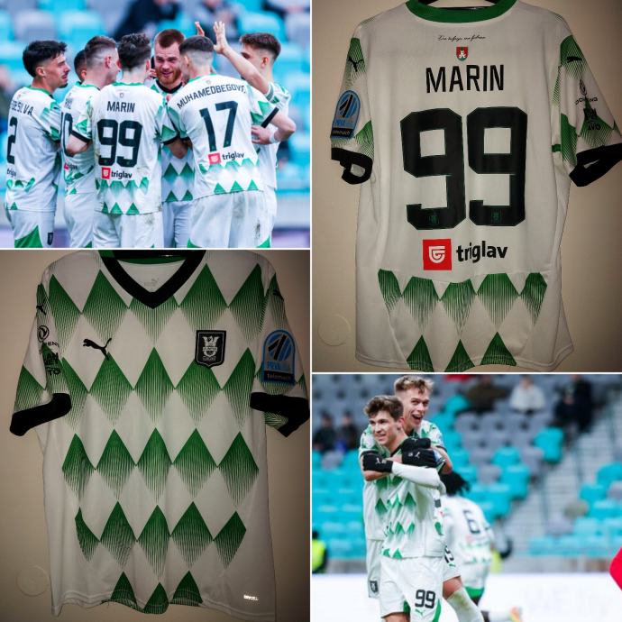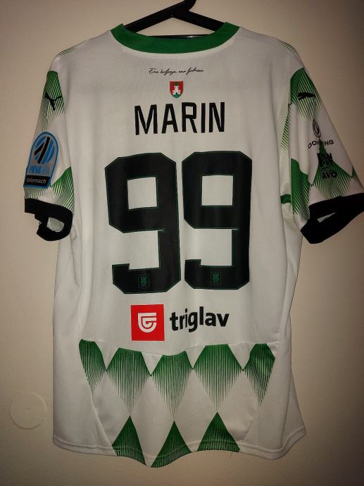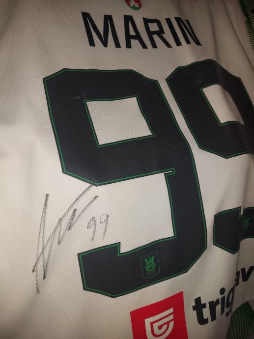 Nogometni dres NK Olimpija 99 Antonio Marin bivši igrač Dinama I mlade Hr. Reprezentancije. Dres je potpisan dobljena na tekmi Olimpija vs. Nafta 16.2.25 gdje je bio i strjelac gola.