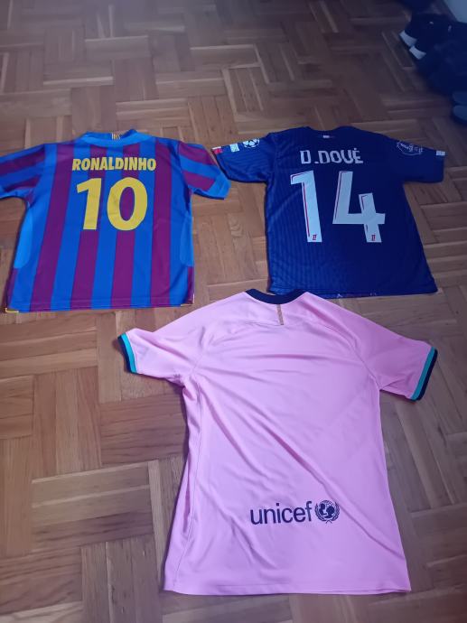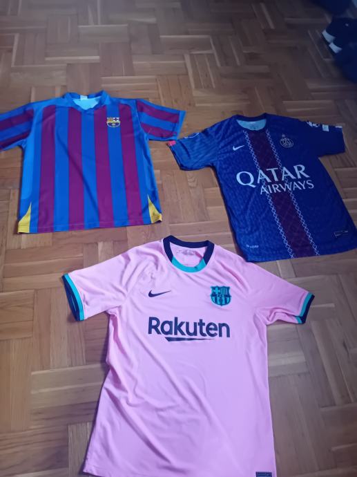 Prodajem tri rabljena nogometna dresa, 2 iz FC Barcelone i jedan iz PSG-a.