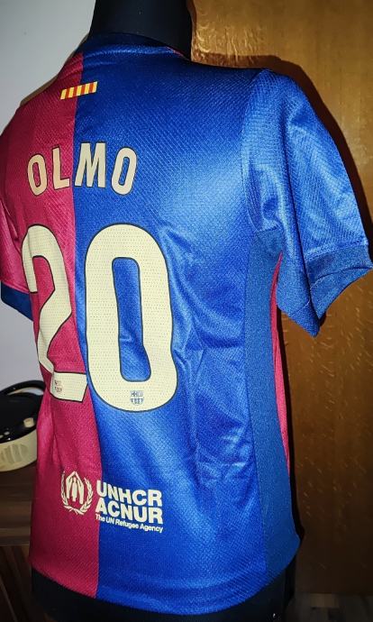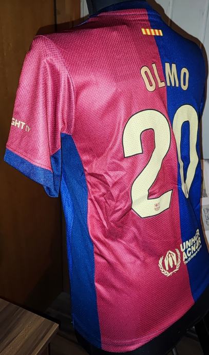 DANI OLMO - dječji nogometni komplet FC Barcelona (dres), u kojem se nalazi majica s brojem 20 i imenom OLMO i kratke sportske hlače s brojem i grbom (dres je na fotografijama).