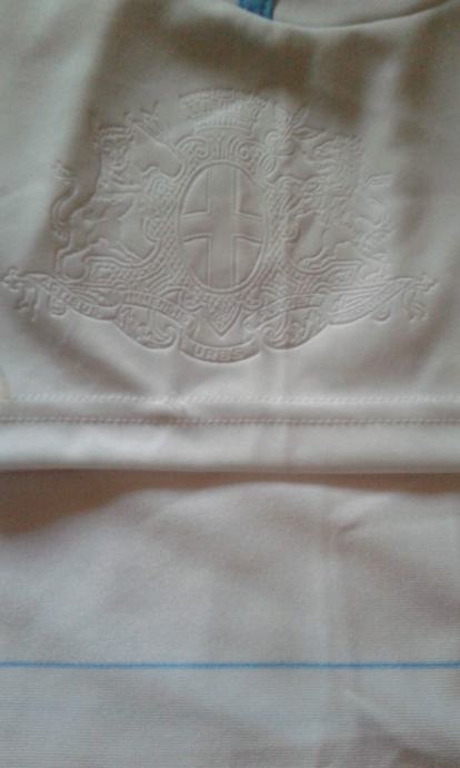 Dres je bez broja. Na leđnoj strani ima polovičan otisak cipele, a sa prednje strane je načeta reklama.