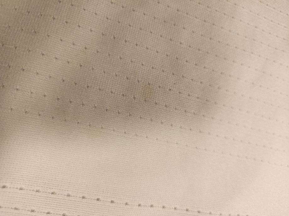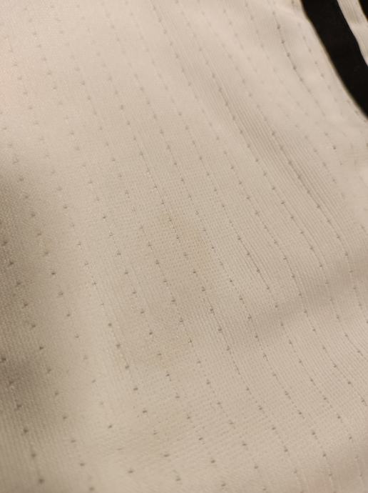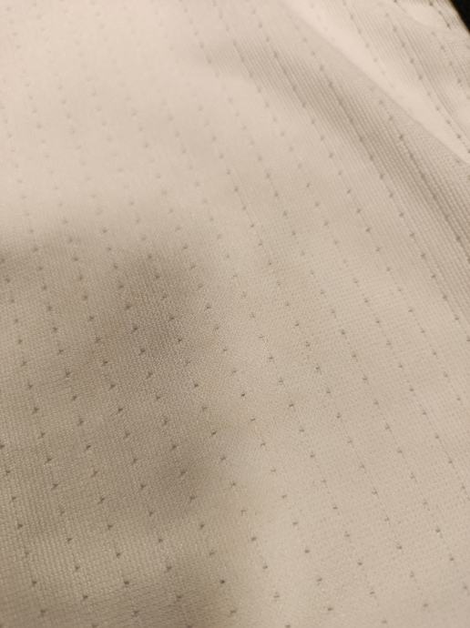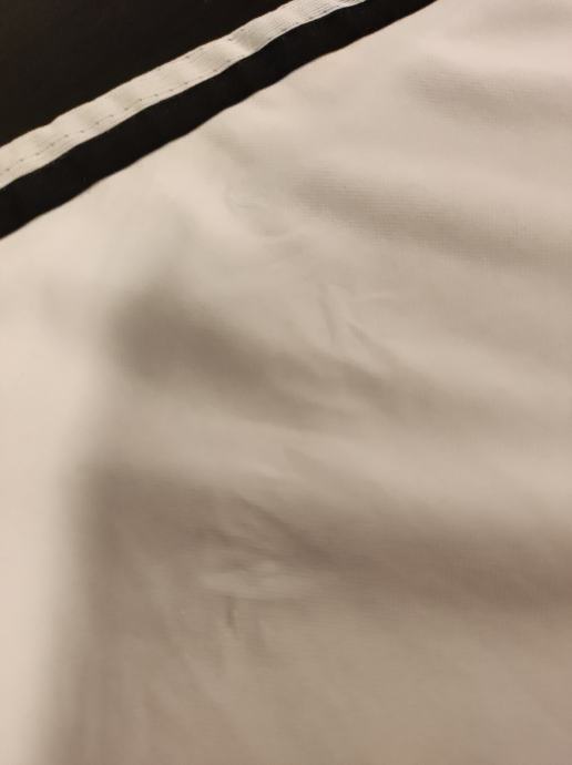 Na rukavima se je odlijepila traka, na desnom potpuno, na lijevom dijelomično. Na dresu je više blijedih mrlja. Na jednom mjestu ima trag rastezanja materijala. Moguće osobno preuzimanje (cijena 8 €) u Novoj vas pri Mokricah 37, 1 km od graničnog prijelaza Bregana ili slanje preko BOX NOW (cijena 10 €) s prethodnom uplatom na tekući račun. Zadnja cijena.