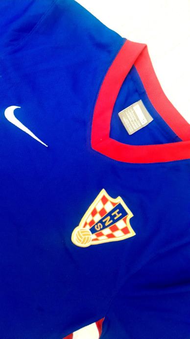 Prodajem dres Hrvatske nogometne reprezentacije, proizvođača Nike. Radi se o gostujućem dresu plave boje s karakterističnim hrvatskim crveno-bijelim šahovskim uzorkom na bočnim stranama. Izrez je V-oblika s crvenim rubom, a na prsima se nalazi grb Hrvatske nogometne federacije (HNS) te Nikeov logotip.velicina S,cijena 20 eura ,uplata t racun ,saljem postom na adresu
