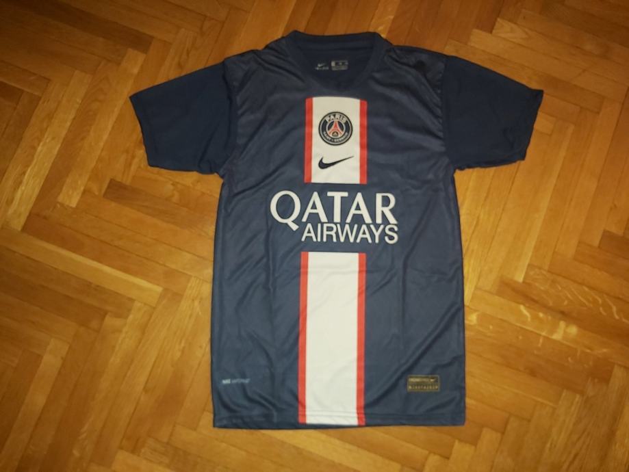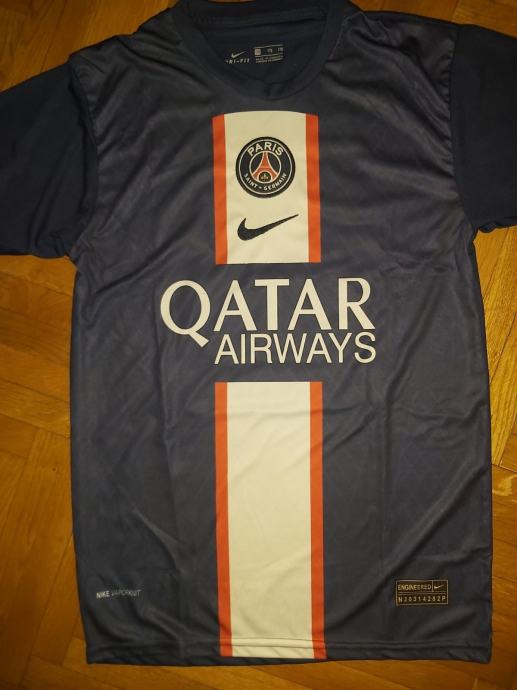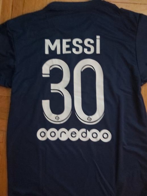 Dres Paris Saint Germain PSG , igrac Leo Messi # 30 NIKE vel S / XS (176cm) mjere ( gornji dio dresa) - majica dužina 63 cm , širina prsa ( od pazuha do pazuha) 42 cm , ramena širina 40 cm , rukavi 18 cm ( komplet ramena rukavi gore 76 cm), donji dio hlačice - dužina 40 cm , sirina skupljeno 26 cm , rašireno 42 cm .. grb PSG i logo NIKE ušiveni , sponzor i oznaka lige prednja strana print , ime i broj pvc -NOVO! Dostupno odmah , dostava za RH !
