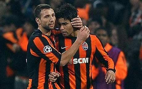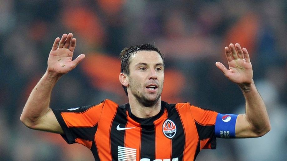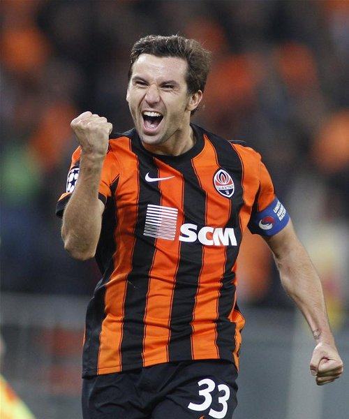 FC Shakhtar Donetsk .sport oprema NIKE fit kapetan Darijo Srna # 33. sponzor SCM; grb kluba na broju , D-rukav oznaka lige prvaka .
