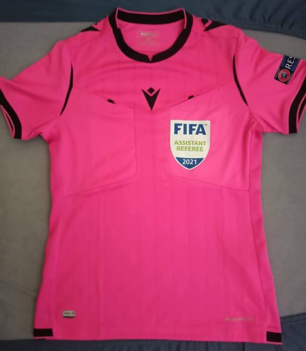Prodajem rabljeni u vrlo dobrom stanju rozi sudački dres Macron...vel.M...sa ljepljenim znakom Fifa i original natpisom Respect na rukavu...cijena 40 €...moguće osobno preuzimanje u Splitu ili šaljem Tisak paketom.