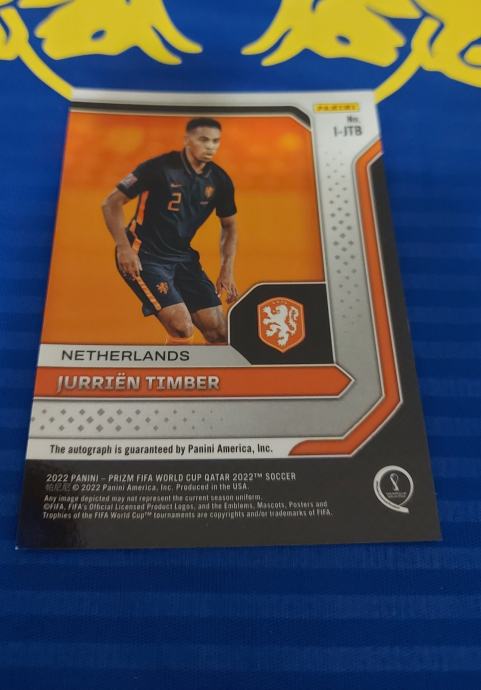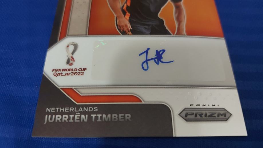 Prodajem potpisanu Panini karticu Jurriena Timbera iz nizozemske nogometne reprezentacije. Kartica je sa Svjetskog prvenstva u Kataru 2022., dio je Prizm kolekcije i sadrži originalni autogram igrača. U rabljenom je stanju ali dobro očuvana, idealna za kolekcionare sportskih kartica.